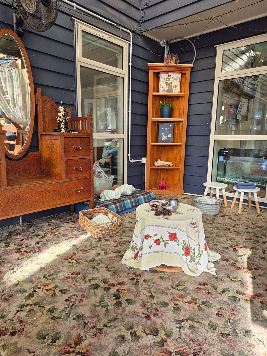 Around 12 noon we all come inside for lunch and children that need a nap will do so after lunch.